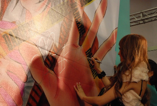 最後の大仕事、後ろにあったでっかいタペストリーに今まで書いたコトないくらいおっきなサインを書いて。。。