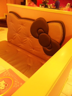 カフェに入ってすぐ目につくキティちゃんソファ